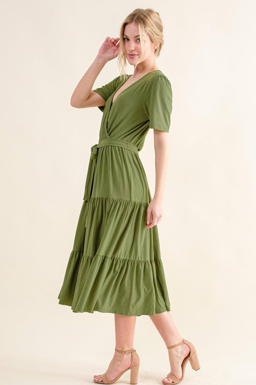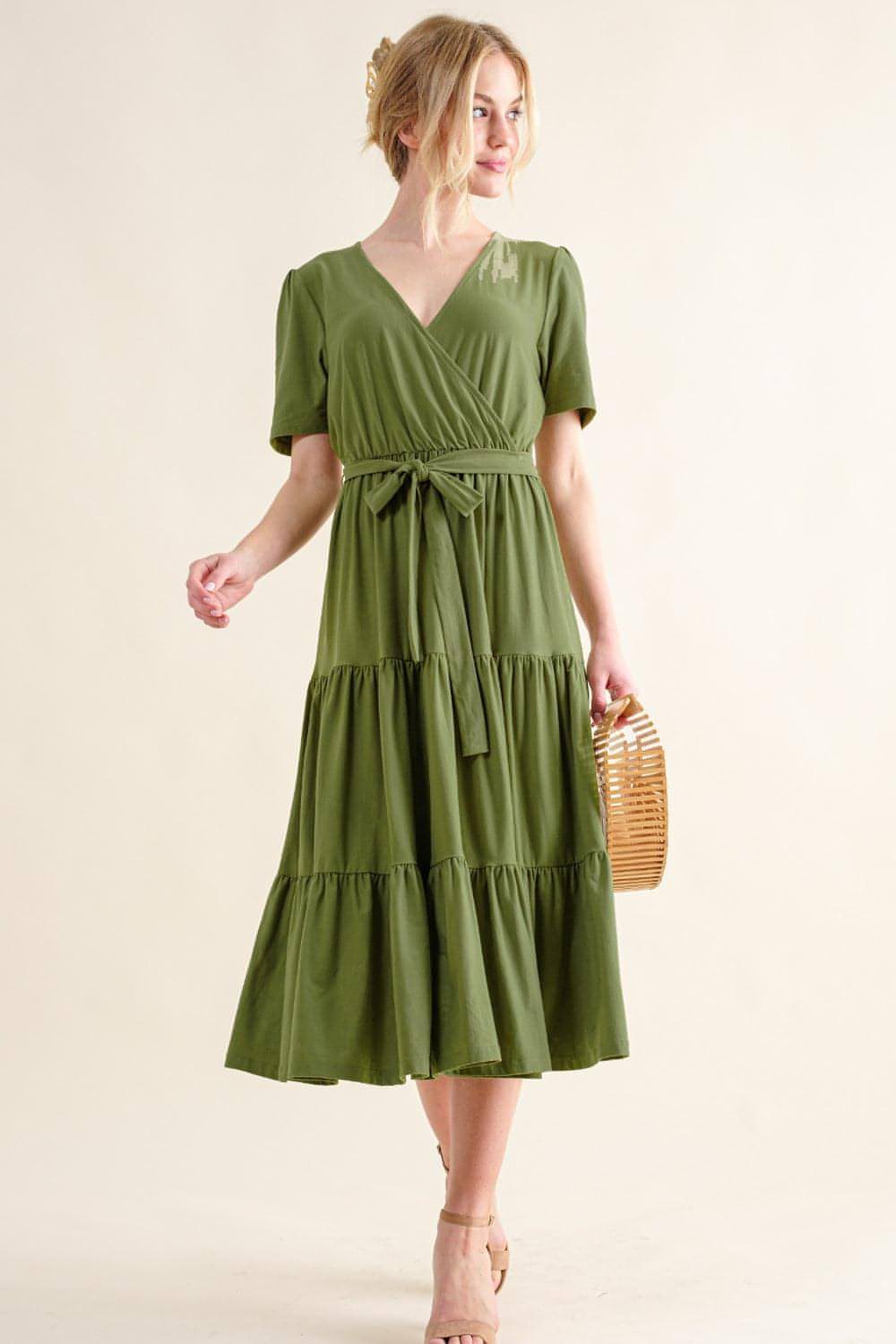 And The Why Soft Short Sleeve Tiered Midi Dress